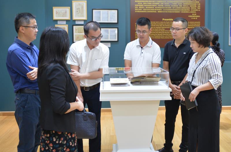 考察组一行对我院南海档案馆、成果展示厅、数字南海演示厅、礼堂、图书馆、党建活动室等基础设施进行了实地察看,听取了场馆讲解,观看了我院拍摄的南海主题数字短片。