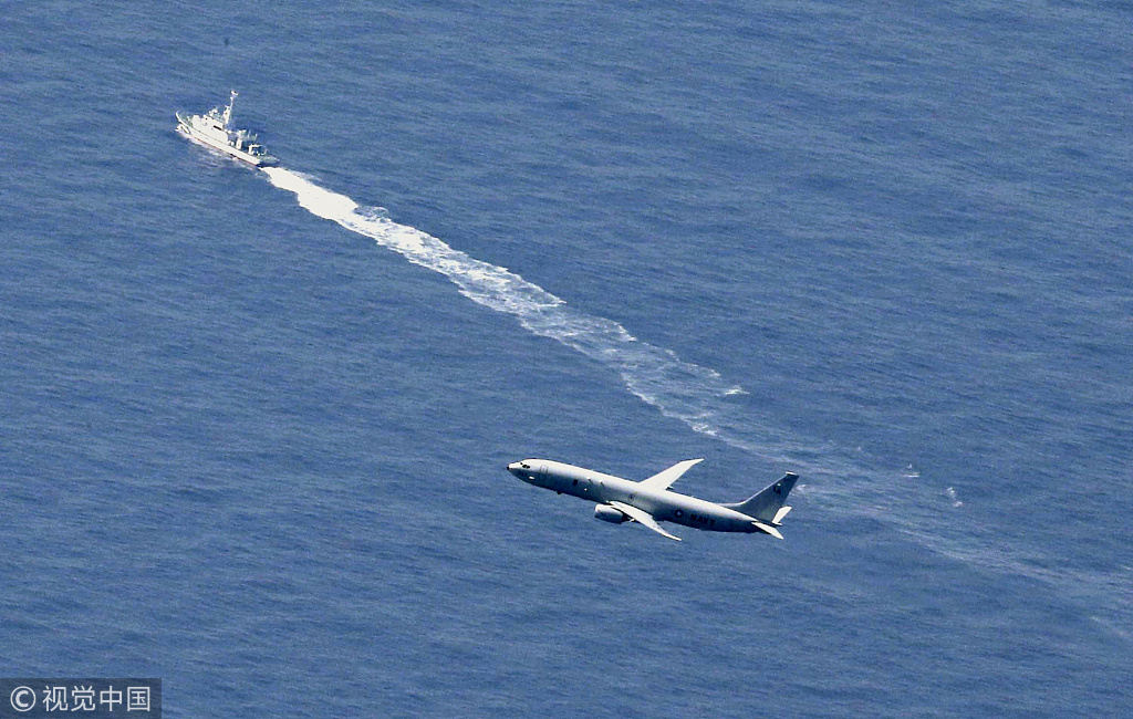 10日,日本青森县海域,一艘日本海岸警卫队船只和一架美国军用飞机在坠毁现场进行救援和搜索 图源:视觉中国