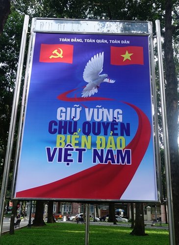 在看过这幅画着白鸽并提到“bien dao”的近期海报的照片后,几名研究越南问题的学者提出了自己的看法。“我可以想象,对于绝大多数越南人而言,保护‘bien dao’指的无非就是黄沙群岛和长沙群岛——自去年5月以来,还包括专属经济区,”新加坡东南亚研究所(Institute of Southeast Asian Studies)的访问学者杰森·莫里斯-荣(Jason Morris-Jung)说。他使用的是存在争议的帕拉塞尔群岛和斯普拉特利群岛(Spratly Islands,越南称之为长沙群岛[Truong Sa],中国称之为南沙群岛——译注)的越南名称。