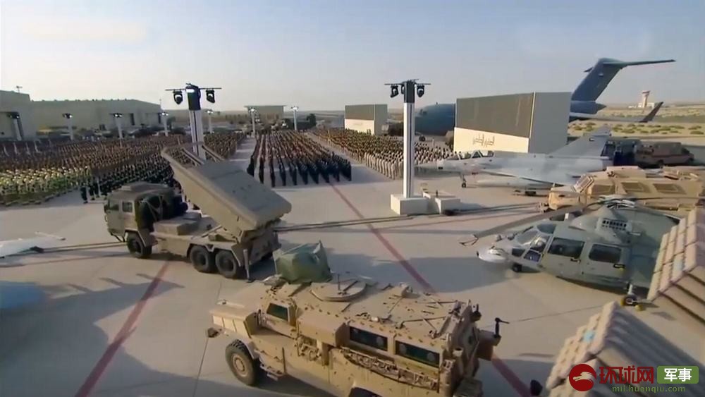 据简氏防务周刊12日报道称,此次阅兵在扎耶德空军基地举行,阿联酋七个酋长国的王储均出席。阅兵现场展示了阿联酋装备的各式陆空作战武器,其中占据C位的是一架美制C-17运输机,两侧则呈半弧形摆放着各种陆战车辆装备,其中就包括中国制造的SR5多管火箭发射系统。