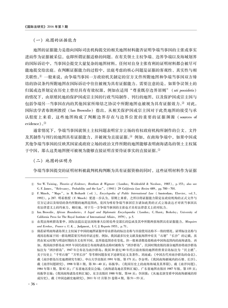 领土主权与海域划界争端中地图的证明效力研究